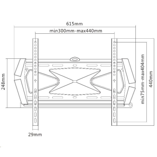 Technické údaje: nosnost 40kg podpora VESA 300x200 až 400x400 na televize a monitory s úhlopříčkou 42-55" systém pro uzamčení Tv na držáku (zámek není součástí balení) vzdálenost od zdi 22mm velmi pevná konstrukce designové krytky instalační materiál, vodováha barevné provedení černé záruka 3 roky Držák podporuje VESA: VESA300x200 VESA 300x300 VESA 400x200 VESA 400x300 VESA 400x400 v případě demontáže středového designového krytu umožníte nastavení VESA 100x100, VESA 200x100 a VESA 200x200.