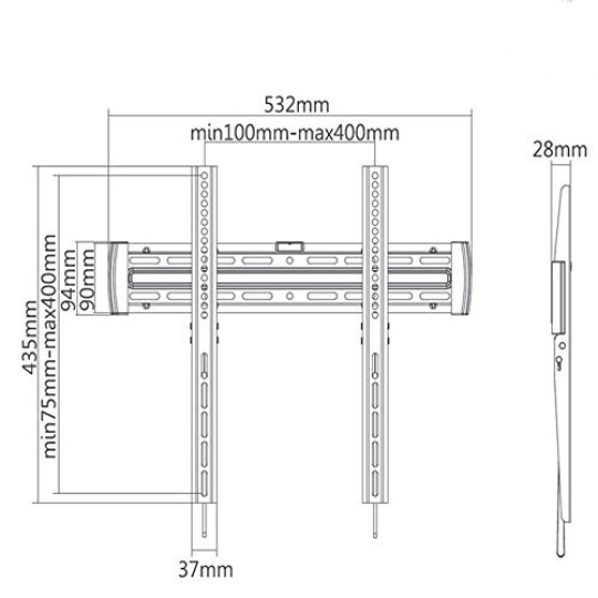 Pevný držák Tv Fiber Mounts M6C43 Nástěnný držák na Tv 32-55", fixní zavěšení na stěnu, vzdálenost Tv od zdi 28mm, podpora VESA 75x75 až 400x400, nosnost 30kg Kvalitní, ale zároveň cenově dostupný fixní držák pro zavěšení všech typů televizorů s úhlopříčkou 32-55". Držák můžete zatížit hmotností až 30kg, po zavěšení je televizor automaticky zajištěn proti vysazení - uvolnění pomocí tahel, která zůstanou skryta za televizorem. Držák podporuje VESA standardy 75x75 až 400x400 a má integrovanou vodováhu pro snadnou montáž na stěnu. Dodáváme včetně montážního materiálu. Televizní držák Fiber Mounts M6C43 pro fixní zavěšení televize na stěnu Technické údaje: max. zatížení 30kg podporuje VESA standardy 75x75 až 400x400 doporučujeme na televizory s úhlopříčkou 32-55" odsazení Tv od zdi 28mm automatické zajištění Tv proti vysazení uvolnění pomocí tahel, která zůstanou skryta za obrazovkou bezpečný držák, pevná konstrukce integrovaná vodováha pro snadnou montáž dodáváme včetně montážního materiálu barva černá záruka 5 let Fiber Mounts M6C43 je levný, ale přesto velmi kvalitní držák na Tv 32-55" Držák Tv Fiber Mounts M6C43 podporuje VESA standardy: VESA 75x75 VESA 100x100 VESA 200x100 VESA 200x200 VESA 300x200 VESA 300x300 VESA 400x200 VESA 400x300 VESA 400x400 Na fixní televizní držák Fiber Mounts M6C43 je možné zavěsit všechny typy televizorů včetně prohnutých, které podporují některý z výše uvedených VESA standardů a mají hmotnost maximálně 30kg. Doporučená úhlopříčka je pouze informativní, můžete tedy na tento držák zavěsit i větší televizory..