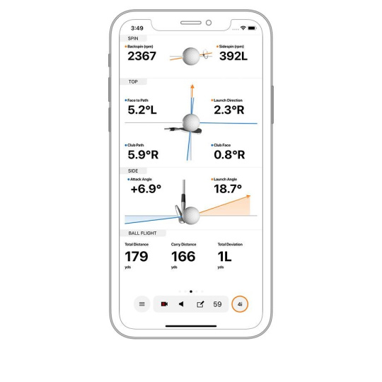 Vylepšete si konzistentnost švihu pomocí sledovaných metrik, k nimž mimo jiné patří rychlost hlavy hole, rychlost míčku, rotace míčku, úhel odpalu, směr odpalu nebo smash factor.