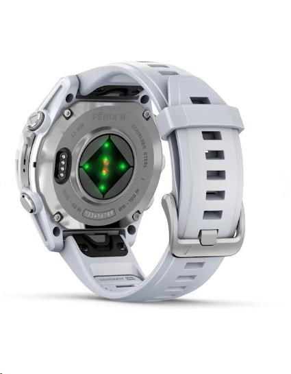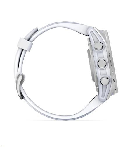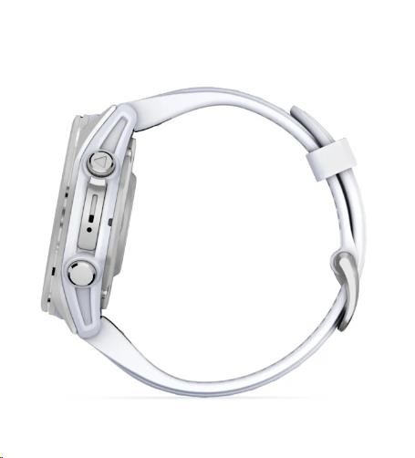 Garmin fenix® 8 – 43 mm, AMOLED, Silver / Whitestone se silikonovým řemínkem.