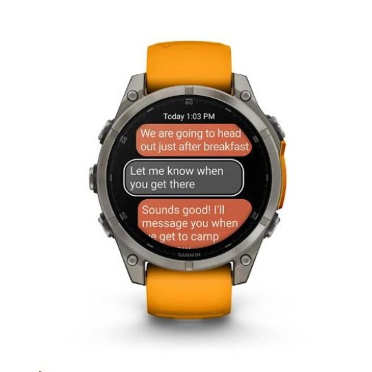 Na hodinkách můžete přijímat e-maily, textové zprávy a upozornění na spárovaném telefonu Android nebo Apple. Hodinky rovněž podporují platby Garmin Pay, abyste se při svých dobrodružstvích mohli vydat kamkoliv a nestarat se o to, že jste něco zapomněli doma. S hodinkami Garmin fénix 8 máte totiž vždy všechno důležité po ruce - na svém zápěstí.