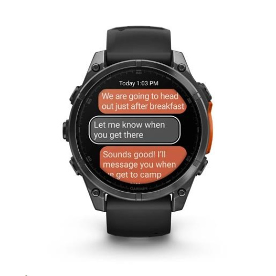 Na hodinkách můžete přijímat e-maily, textové zprávy a upozornění na spárovaném telefonu Android nebo Apple. Hodinky rovněž podporují platby Garmin Pay, abyste se při svých dobrodružstvích mohli vydat kamkoliv a nestarat se o to, že jste něco zapomněli doma. S hodinkami Garmin fénix 8 máte totiž vždy všechno důležité po ruce - na svém zápěstí.