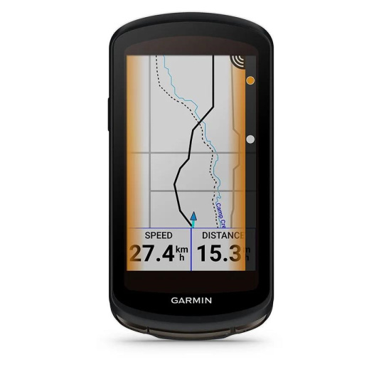 Při navigaci po trase poskytuje Edge podrobné navigační pokyny a navíc i odhad času dojezdu do cíle, do průjezdních bodů v trase a navíc i časy západu a východu Slunce.