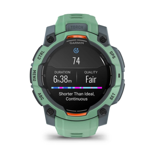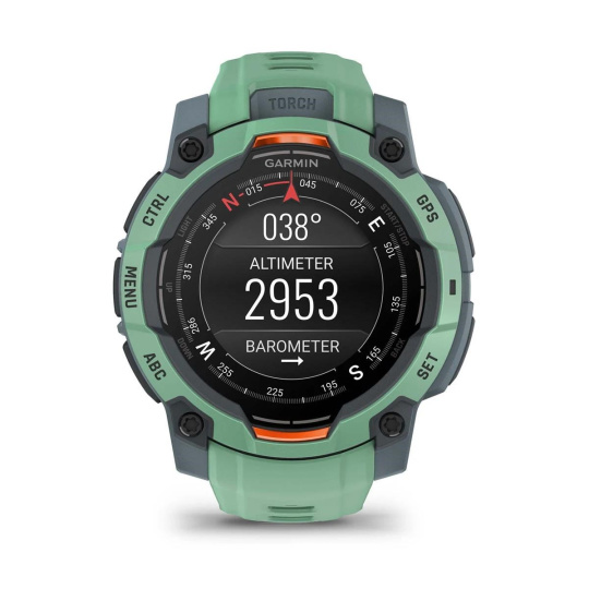 Zářivý AMOLED displej ve vysoce odolném provedení - luneta zpevněná kovovými prvky poskytuje v kombinaci s tvrzeným sklíčkem účinnou ochranu proti poškrábání. V pouzdře hodinek se ukrývá výkonná LED svítilna s nastavitelným jasem v několika úrovních a světlem bílé nebo červené barvy. K dispozici je sada funkcí pro nepřetržitý monitoring zdravotních funkcí. Například měření srdečního tepu ze zápěstí, pokročilé sledování spánku, měření okysličení krve pomocí Pulse Ox2 senzoru a další.
