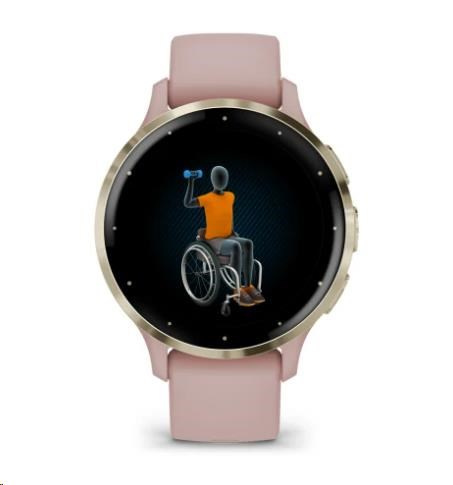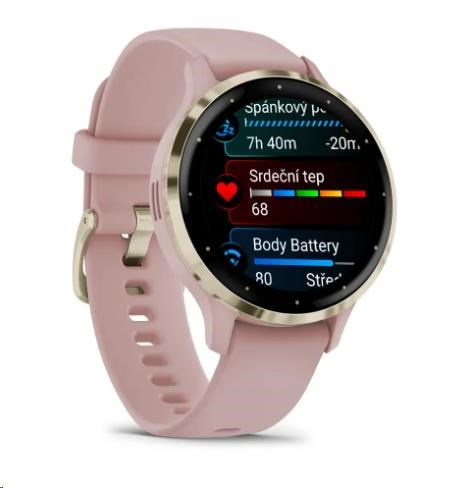 Garmin Venu® 3S, Nerezová luneta Soft Gold, pouzdro Dust Rose, silikonový řemínek