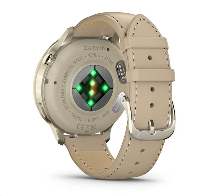 Garmin Venu 4 (41 mm) Zlaté / Bílý silikonový řemínek a Light Sand kožený řemínek, EU (upravit kartu)