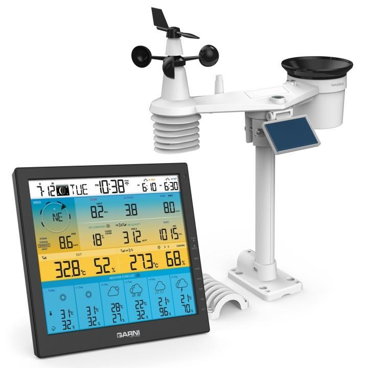 Meteorologická stanice s Wi-Fi, 6denní předpovědí a profesionálním integrovaným bezdrátovým čidlem 7-v-1, model GARNI 1085 Arcus, shromažďuje přesné a podrobné údaje o počasí, které následně v reálném čase nahrává pomocí vestavěného modulu Wi-Fi a místní Wi-Fi sítě na meteorologický server ProWeatherLive. Ten umožňuje automatizované nahrávání údajů z meteorologické stanice a volný přístup ke všem údajům odkudkoliv, kde je přístup k internetu, a to prostřednictvím webového prohlížeče nebo mobilní aplikace. Současně server PWL odesílá do hlavní jednotky informace o dohlednosti, oblačnosti a 6denní předpovědi počasí. Výrobek nabízí solidní výkon všem profesionálním pozorovatelům a nadšencům, a to díky široké škále nastavení a čidel. Stanice vám poskytne místní předpověď, maximální a minimální hodnoty a celkové hodnoty všech meteorologických veličin, to vše, aniž byste museli použít stolní počítač.