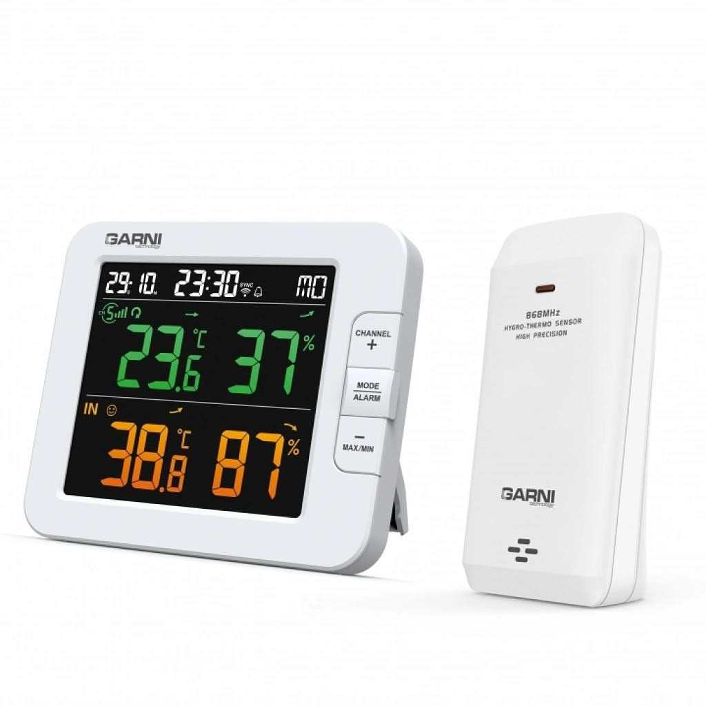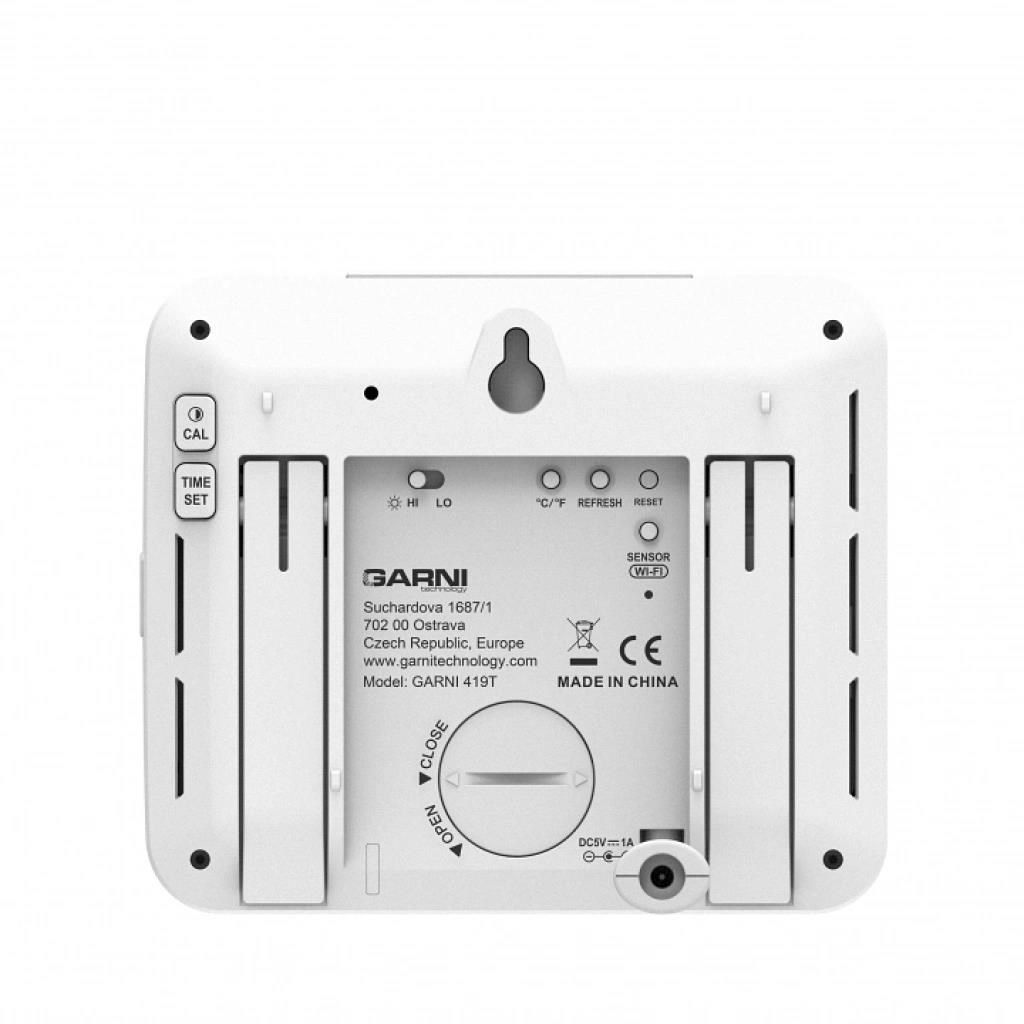 Chytrý vícekanálový teploměr s vlhkoměrem, model GARNI 419T má vestavěný modul WiFi a prostřednictvím svého chytrého systému je kompatibilní s platformou Tuya IOT. Pomocí aplikace Tuya Smart můžete sledovat teplotu a relativní vlhkost hlavní jednotky a bezdrátových čidel, kontrolovat historii záznamů, nastavovat alarmy pro dané veličiny, spouštět pokročilé funkce za pomocí naměřených hodnot a naměřená data odeslat na email v Excel souboru. Je možné jej propojit s dalšími produkty chytré domácnosti, ovládání pak probíhá přes aplikaci v mobilním zařízení. Hlavní jednotka i bezdrátové čidlo jsou osazeny švýcarskými čidly SENSIRION. TUYA spolupracuje s platformou pro chytrou domácnost Tuya připojení k místní Wi-Fi síti 2,4 GHz spolupracuje s aplikací Tuya Smart jazykové mutace aplikace - čeština, slovenština, angličtina barevný inverzní LCD displej o rozměrech 90 x 81 mm stále osvětlený displej, 2 stupně jasu, nastavení kontrastu v 15 úrovních velikost číslic na displeji – čas 9 mm, datum, zkratka názvu dne 7,5 mm, teplota 21,5 mm, relativní vlhkost 21 mm barvy na displeji – čas, datum, zkratka názvu dne bílá, vnitřní teplota a rel. vlhkost oranžová, vnější teplota a rel. vlhkost zelená měření vnitřní a vnější teploty a relativní vlhkosti zobrazení teploty ve °C, nebo °F švýcarská čidla SENSIRION možnost použití až 7 bezdrátových čidel (GARNI 055H, bazénové čidlo GARNI 057P) indikace vnitřní tepelné pohody 3 ikonami možnost kalibrace teploty a rel. vlhkosti vnitřní a na jednotlivých kanálech bezdrátový přenos hodnot vnější teploty a relativní vlhkosti na frekvenci 868 MHz ikona síly signálu z bezdrátových čidel ikona připojení k místní Wi-Fi síti paměť na maximální a minimální naměřené denní a celkové hodnoty teploty a relativní vlhkosti šipka vývoje teploty a rel. vlhkosti čas a datum řízené z Internetu s možností manuálního nastavení budík s možností opakovaného buzení (Snooze) po 5 minutách budící signál - 4 sekundy 1 pípnutí za sekundu, 4 sekundy 2 pípnutí za sekundu, 4 sekundy 3 pípnutí za sekundu a poté stále 4 pípnutí za sekundu ikona slabých baterií možnost aktualizace firmware barva hlavní jednotky bílá napájení síťovým adaptérem a záložní baterií možnost postavení a zavěšení Bezdrátové čidlo GARNI 055H vlhkosti odolné měření teploty a relativní vlhkosti švýcarská čidla SENSIRION 7 kanálů možnost postavení a zavěšení barva bílá možnost postavení a zavěšení napájení bateriemi 2 ks typ AA (tužkové, nejsou součástí dodávky) Obsah balení hlavní jednotka 1 ks bezdrátové čidlo GARNI 055H síítový adaptér návod CZ, SK, EN. DE, PL, HU, NL.