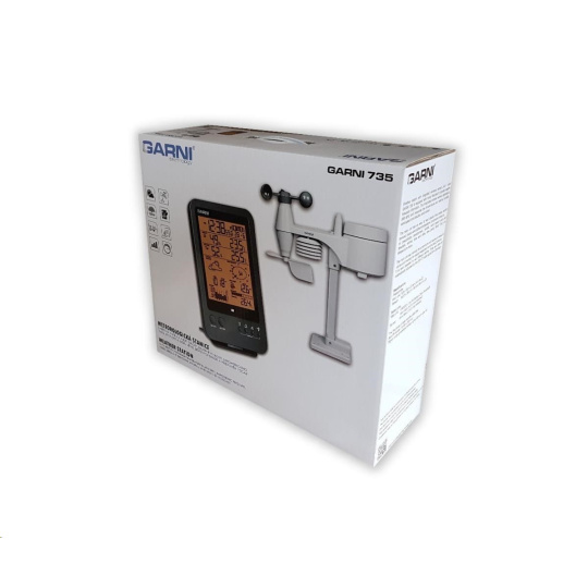 Meteorologická stanice s měřením vnitřní a vnější teploty, relativní vlhkosti, barometrického tlaku, rychlosti a směru větru, dešťových srážek a předpovědí počasí