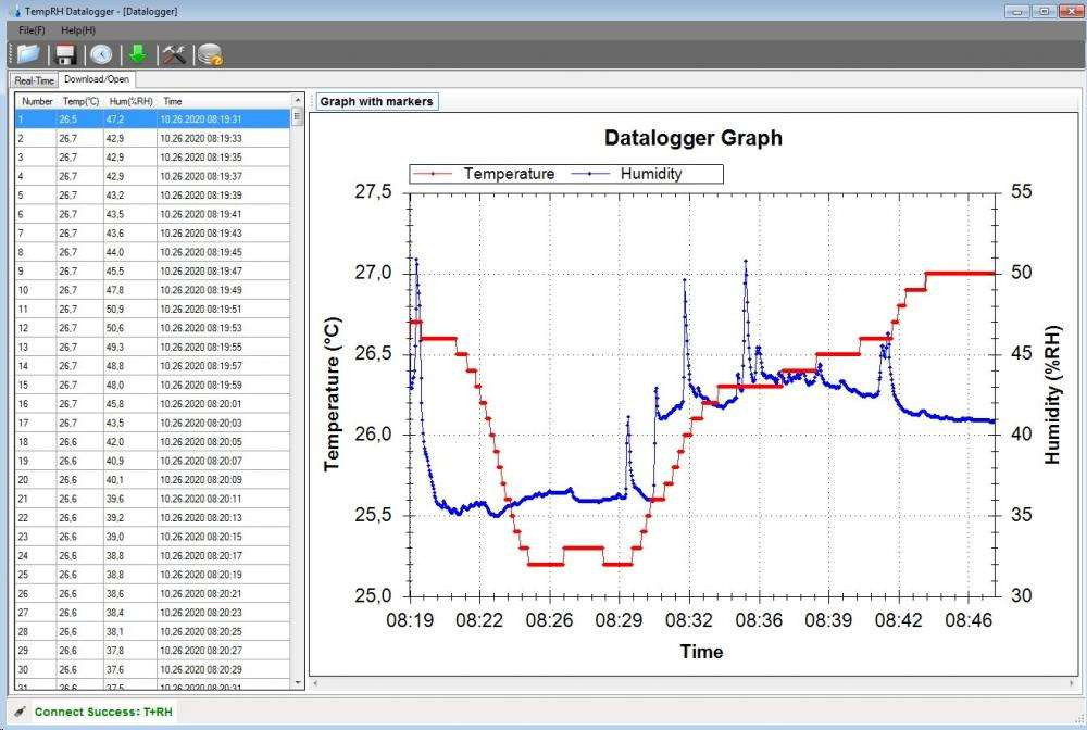 paměť pro 20 010 hodnot teploty a vlhkosti LCD displej o rozměrech 22 x 20 mm pro zobrazení aktuálních, minimálních a maximálních naměřených hodnot možnost nastavení načítání dat od 2 sekund do 24 hodin (2 až 30 s, dále 1, 5, 15, 30 min, dále 1, 5,12, 24 hodin) připojení k počítači přes USB port nastavitelný alarm horní a dolní meze pro teplotu a relativní vlhkost program TempRH Datalogger pro zobrazení naměřených hodnot pro OS Windows až do verze Windows 10 (32 bit a 64 bit) zobrazení naměřených dat v reálném čase v přiloženém programu včetně grafu možnost odloženého zahájení měření data ve formě zprávy v pdf fornátu a tabulky ve formátu *.csv a ve formátu *.imtr (Meter Files - lze otevřít přiloženým programem) součástí balení je datalogger, poutko, baterie, CD s programem a návod.