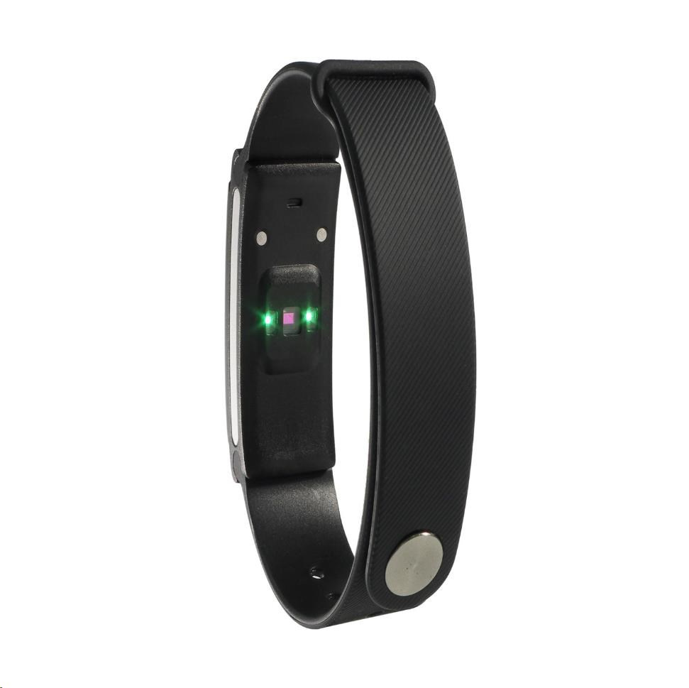 - zobrazení na náramku - datum, průběh plnění stanovených cílů, stav baterie, ikona aktuálního režimu, ikona zapnutého buzení, ikona připojení k mobilnímu zařízení aktuální čas, počet kroků, kalorie, tepová frekvence a dále ve sportovním režimu podle volby v aplikaci, až 8 zvolených údajů