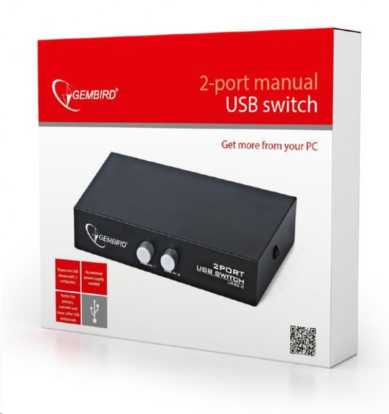 GEMBIRD Datový přepínač USB 2:1 manuální (switch)