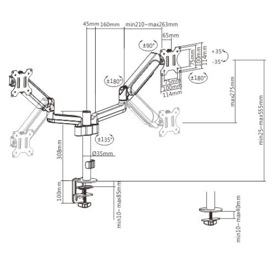 - Stolní držák monitoru s dvojitým ramenem monitoru