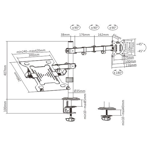 - Držák na stůl s ramenem monitoru a stojanem na notebook