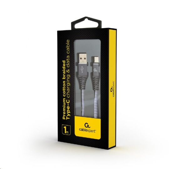 GEMBIRD Kabel USB 2.0 AM na Type-C kabel (AM/CM), 1m, opletený, bílo-strříbrný, blister, PREMIUM QUALITY