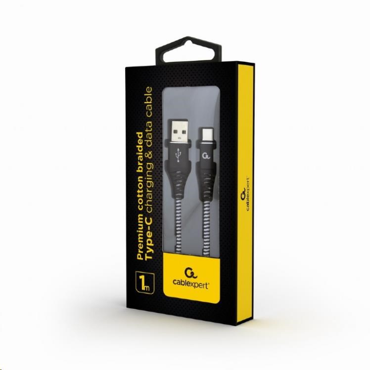 GEMBIRD Kabel USB 2.0 AM na Type-C kabel (AM/CM), 1m, opletený, černo-bílý, blister, PREMIUM QUALITY