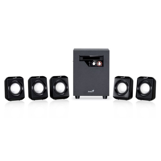Elegantní systém reproduktorů v konfiguraci 5.1 nabízí celkový výkon 26 W. Sestava je tvořena kvalitním subwooferem s 4" driverem, který disponuje výkonem 14,5 W RMS a stará se o věrné a plné basové tóny. Subwoofer je doplněn pěti satelity, kdy každý disponuje výkonem 2,3 W RMS. Ovládání hlasitosti i basů se nachází na přední straně subwooferu. Součástí balení je napájecí adaptér 100-240 V.