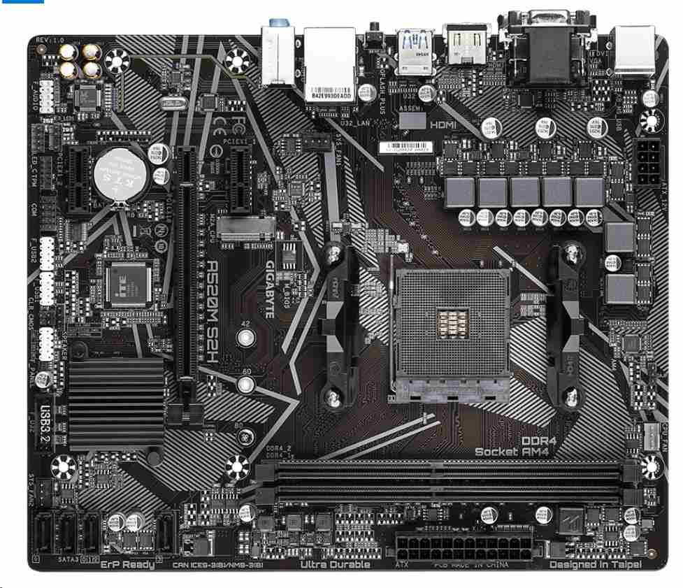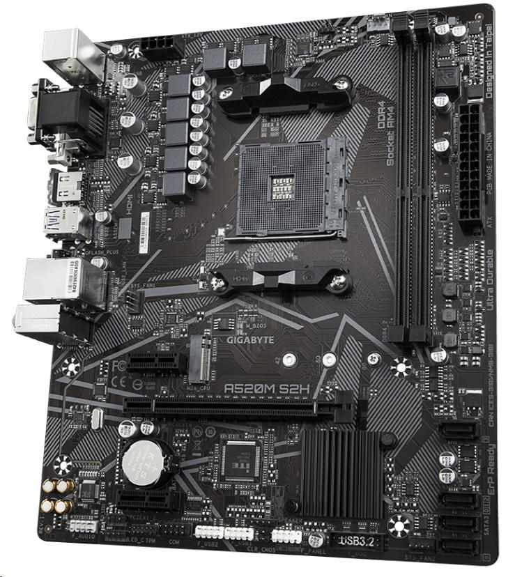AMD A520 Ultra Durable Motherboard with Pure Digital VRM Solution, GIGABYTE Gaming LAN with Bandwidth Management, PCIe 3.0 x4 M.2, RGB FUSION 2.0, Smart Fan 5, Q-Flash Plus, Anti-Sulfur Resistors Design