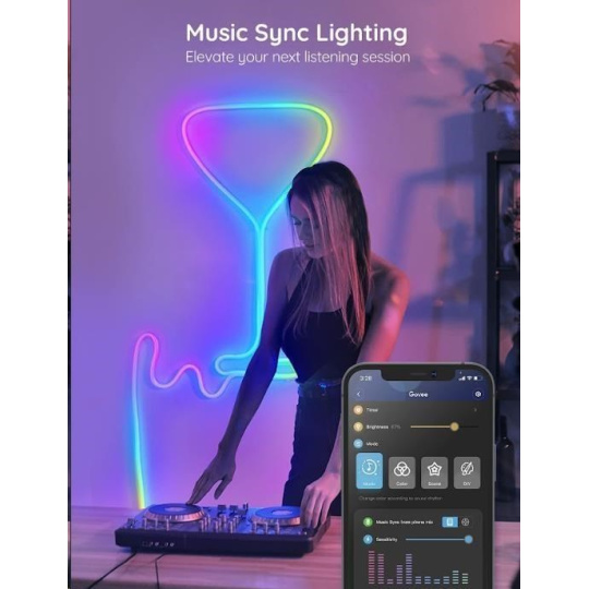 Vylepšete své herní, filmové a hudební zážitky s designovým tvarovatelným světlem Govee Neon Smart. Je energeticky úsporné s životností až 50.000 hodin. Díky technologii RGBIC zobrazuje Govee Neon až 57 barev najednou a celkově umí zobrazit až 16 milionů barev s intenzitou od 1-100%. Určitě si vyberete z více než 64 režimů osvětlení a při poslouchání oblíbené hudby si můžete zvolit také z 11 rytmických režimů. Světla se ovládají hlasem přes Siri, Amazon Alexa nebo Google Assistant nebo přes aplikaci Govee Home na chytrém telefonu nebo tabletu. Světlo má celkovou délku 2 metry, je určeno na instalaci na zeď a jeho tvar si můžete přizpůsobit podle vlastní fantazie. Jednoduchá instalace bez vrtání pomocí 3M pásek.