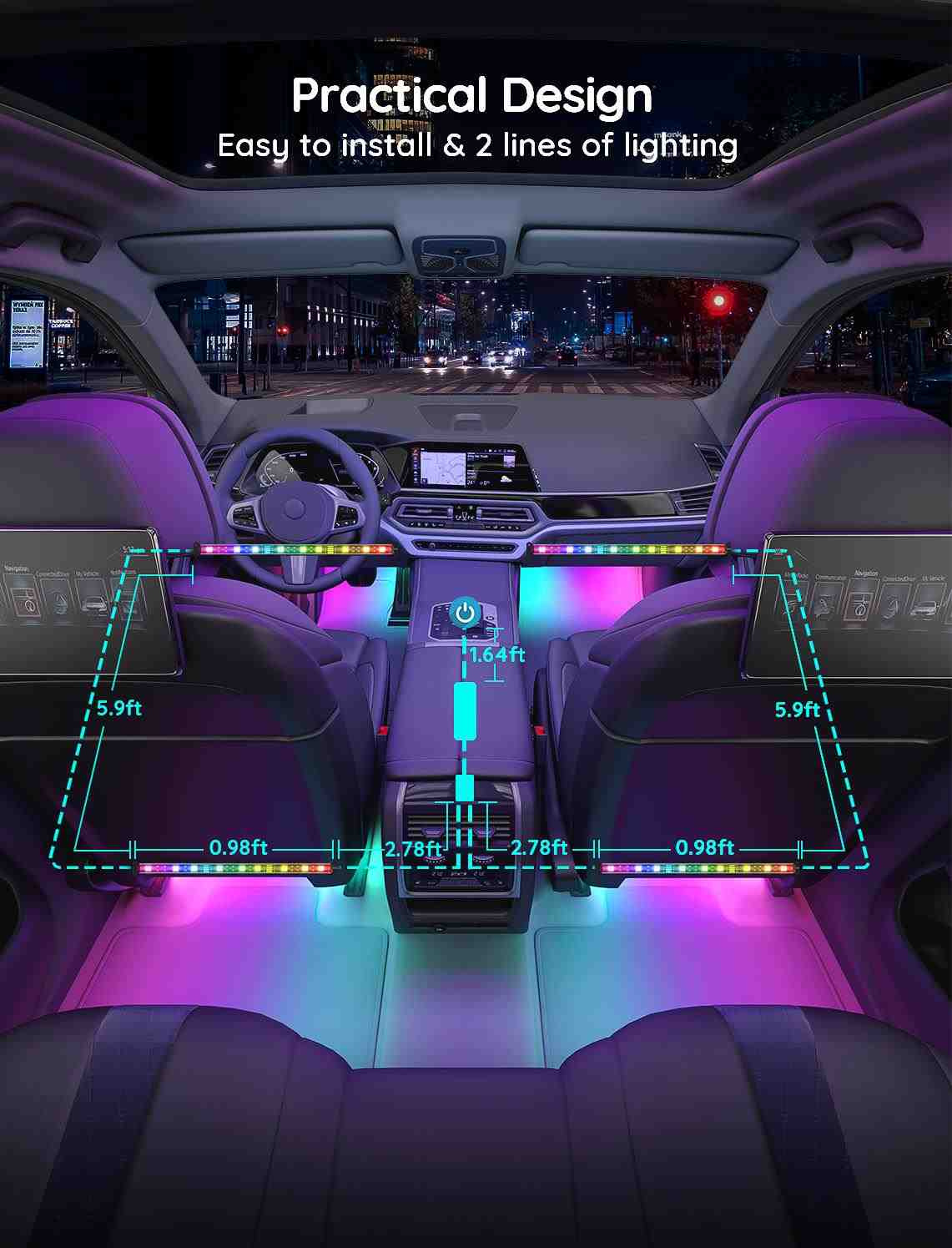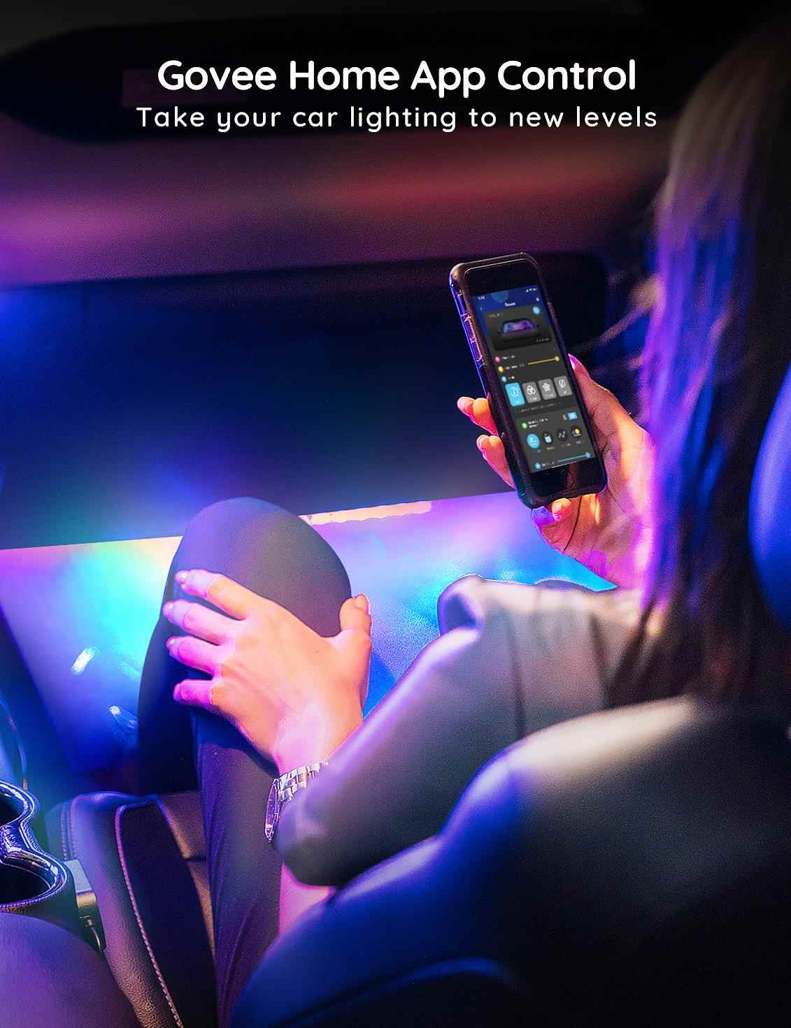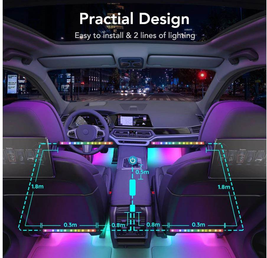 Úsporné interiérové chytré LED pásky Govee Smart RGBIC do auta s životností až 50.000 hodin vylepší interiér vašeho automobilu a poskytnou zážitek, který se naskytuje u luxusních vozů. Můžete je použít prakticky všude, kde je zapalovaní. Zobrazuje až 16 milionů barev, jejichž intenzitu lze nastavit od 1-100%. Díky technologii RGBIC si můžete rozdělit pásek na samostatné segmenty, pro které si můžete pak volit rozdílné barvy. Vyberte si ze 30 režimů osvětlení a při poslouchaní oblíbené hudby se budou světla synchronizovat. Nebo si prostě nastavte svoje vlastní barevné kombinace v režimu DIY. Příkazy můžete zadat přes aplikaci Govee Home na chytrém telefonu nebo tabletu nebo přímo na Control boxu. Instalace je jednoduchá a je rozdělená na přední a zadní část automobilu.