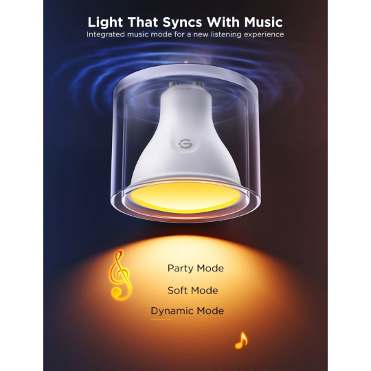 Chytré žárovky GU10 Govee B600D jsou tu pro dokonalé moderní osvětlení vašeho domova. Jejich svítivost je 400 lumenů při příkonu 4,8 W. Žárovky používají technologii RGBWW, tedy 16 mil. barev a k tomu různé teploty bílé. Žárovku lze tedy používat jako dekorativní osvětlení, ale také jako hlavní zdroj bílého světla s rozmezím teploty 2700-6500 K s indexem podání barev 80 Ra a stmívatelností v rozmezí 1-100 %. To stačí na pokrytí celého dne a všech druhů aktivit jako je práce, relaxace nebo usínání a probouzení. Žárovky se díky energetické a tepelné šetrnosti nepřehřívají a vydrží tak svítit mnoho let. Ovládání je možné aplikací Govee Home, Google Home a hlasem pomocí asistentů Google, Alexa i Siri. Několik žárovek je možné seskupit pro pohodlnější ovládání. Aplikace nabídne mnoho přednastavených scén, které se hodí pro každou příležitost a díky mikrofonu umí žárovky i vizualizovat hudbu. Žárovky se připojují přes Bluetooth pro rychlé lokální ovládání, nebo Wi-Fi pro vzdálenou kontrolu. Díky ní můžete žárovky libovolně ovládat a časovat v případě, že nejste doma a předejít tak tomu, aby se vaše obydlí stalo cílem zlodějů.