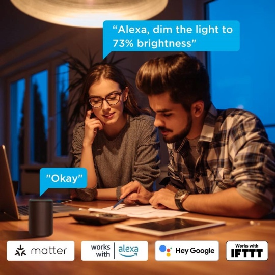 Chytré žárovky Govee B8015 jsou tu pro dokonalé moderní osvětlení vašeho domova. Jejich svítivost je 800 lumenů při příkonu 9 W. Žárovky používají technologii WW, tedy nastavitelnou barvu bílého světla v rozmezí 2700 až 6500 K. Žárovku lze tedy používat jako dekorativní, ambientní osvětlení, ale také jako hlavní zdroj bílého světla. Příjemné barvy zajistí index Ra 89. Žárovky je možné v aplikací stmívat v rozmezí 1-100 %. To stačí na pokrytí celého dne a všech druhů aktivit jako je práce, relaxace nebo usínání a probouzení. Žárovky se díky energetické a tepelné šetrnosti nepřehřívají a vydrží tak svítit mnoho let. Ovládání je možné aplikací Govee Home, Google Home a hlasem pomocí asistentů Google, Alexa i Siri. Žárovky podporují protokol Matter pro integraci do Apple Homekit a dalších smart home systémů. Nově je podporovaný i protokol IFTTT. Několik žárovek je možné spojit do skupiny pro pohodlnější ovládání. Žárovky se připojují přes Bluetooth pro rychlé lokální ovládání, nebo Wi-Fi pro vzdálenou kontrolu. Díky ní můžete žárovky libovolně ovládat a časovat v případě, že nejste doma a předejít tak tomu, aby se vaše obydlí stalo cílem zlodějů.
