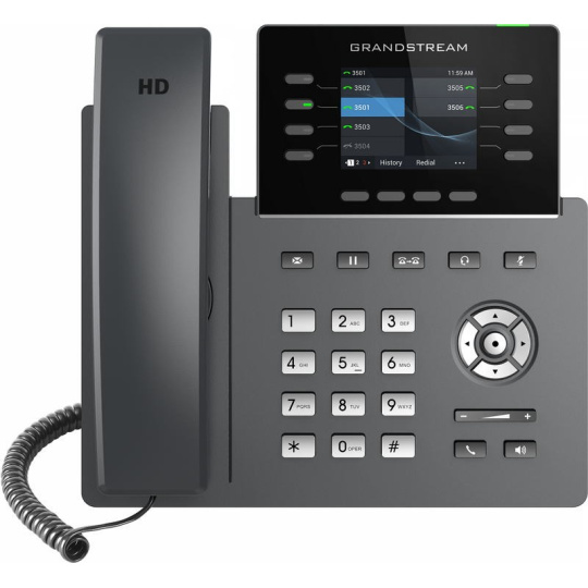 GRP2624 je součástí řady GRP IP telefonů a je to profesionální 8linkový model navržený se zero-touch provisioningem pro hromadné nasazení a snadnou správu. Vyznačuje se elegantním designem a sadou funkcí nové generace, včetně: 5cestné audio konference pro maximální produktivitu, integrovanou Wi-Fi, podporou Bluetooth, HD zvukem jak na reproduktoru, tak i na sluchátku, aby byla zajištěna maximální kvalita hlasu, podpora EHS pro náhlavní soupravy Plantronics a USB na podporu náhlavních souprav Grandstream řady GUV. GRP2624 je kompatibilní s rozšiřujícím modulem GBX20, který přidává funkčnost, všestrannost a flexibilitu až se 40 kontakty na modul a podporou až 160 kontaktů připojením 4 rozšiřujících modulů. Řada GRP obsahuje funkce zabezpečení na Enterprise úrovni včetně secure boot, duálního image firmwaru a šifrovaného uložiště dat. Pro zřizování a centralizovanou správu je GRP2624 podporován systémem Grandstream Device Management System (GDMS), který poskytuje centralizované rozhraní pro konfiguraci, provisioning, správu a monitorování nasazení koncových bodů Grandstream. GRP2624 je perfektní volbou pro zaneprázdněné profesionály a recepční, kteří potřebují spravovat vysoké objemy hovorů s pokročilými funkcemi. GRP2624 je navržený pro snadné nasazení ve velkých firmách, u poskytovatelů služeb a dalších velkoobjemových trzích, nabízí snadno použitelný a jednoduše nasaditelný hlasový koncový bod.