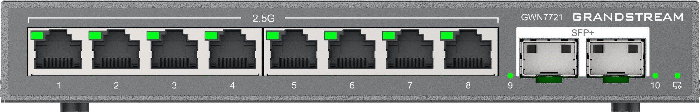 Modely GWN7721 a GWN7721P jsou 10portové spravované přepínače Layer 2 Lite vybavené 8 porty 2,5 Gigabit Ethernet a 2 porty 10 Gigabit SFP+, které umožňují malým a středním podnikům budovat škálovatelné a bezpečné vysokorychlostní sítě.
