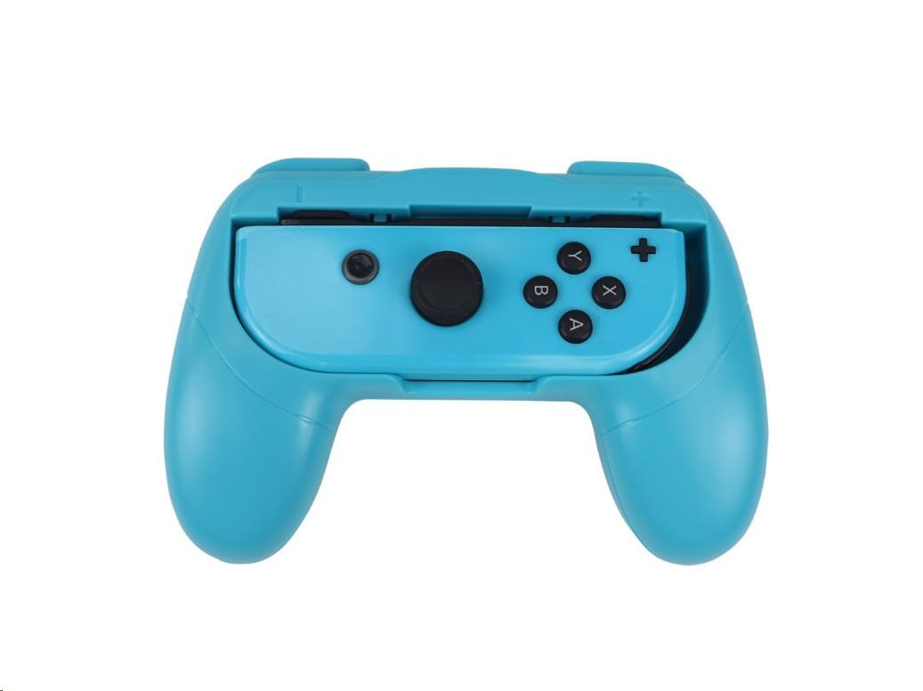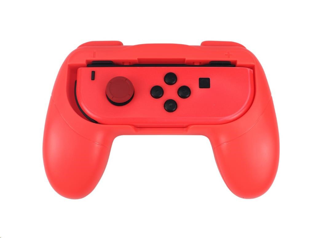 - Grip 'n' Play Controller Kit obsahuje 2x úchyty ovladačů (1 neonově červený a 1 neonově modrý) a 2x palcové úchyty (1 neonově červený a 1 neonově modrý) navržené pro ovladače Nintendo Switch™ Joy-con™