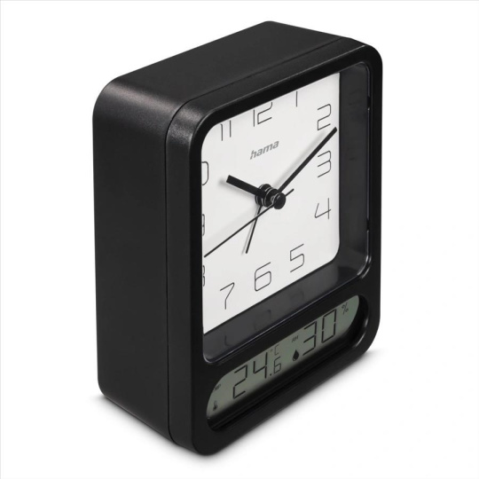Hama Pag, budík se zobrazením teploty a vlhkosti vzduchu, tichý chod, černý