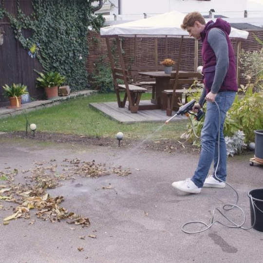 Zalévání rostlin, Čištění okapů, Čištění zahradního nábytku, Odstraňování listí, Čištění pneumatik jízdních kol, Čištění motocyklu, Čištění auta, Odstranění odolných nečistot