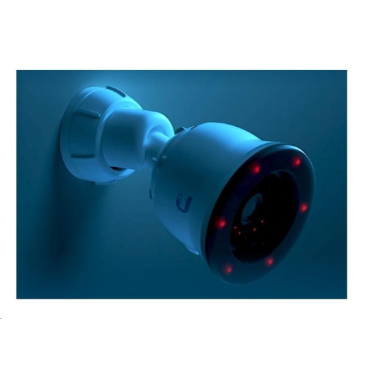 UniFi G4 Bullet kamera disponuje 4Mpx snímačem (2688 x 1520, 24fps), objektivem s ohniskovou vzdálenosti cca 4mm, pozorovacím úhlem 86°, IR přísvitem pro noční vidění, audio mikrofonem a Gigabitovým portem s podporou PoE. Díky skvělému držáku jste schopni obraz směrovat ve všech 3 osách. Kameru je možné napájet pouze prostřednictvím PoE adaptéru nebo switche podporující standard 802.3af. Maximální spotřeba kamery je pouhé 4W!