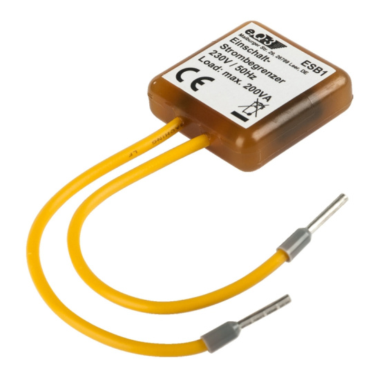 Kompenzátor náběhového proudu (ESB1) se zapojuje do série se zátěží a díky své kompaktní velikosti je vhodný pro montáž do zápustné nebo povrchové elektroinstalační krabice.