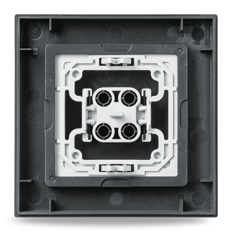 Kryt kolébkového vypínače se symboly šipek a rámečkem v antracitové barvě (HmIP-BRA-A) pro programovatelné bezdrátové akční členy (HmIP-BRC2, HmIP-BROLL, HmIP-BBL, HmIP-BSM, HmIP-BDT) o velikosti 55 mm je součástí systému chytré domácnosti Homematic IP.
