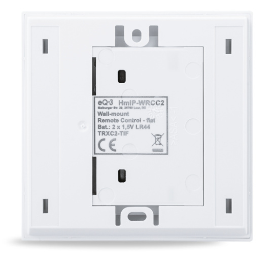 Programovatelný, bezdrátový Nástěnný dálkový ovladač (HmIP-WRCC2) je součástí systému chytré domácnosti Homematic IP. Dvě tlačítka pro manuální ovládání zařízení nebo vzdálené řízení systémových funkcí chytré domácnosti. Zařízení může ovládat osvětlení, rolety, žaluzie, garážová vrata atd.