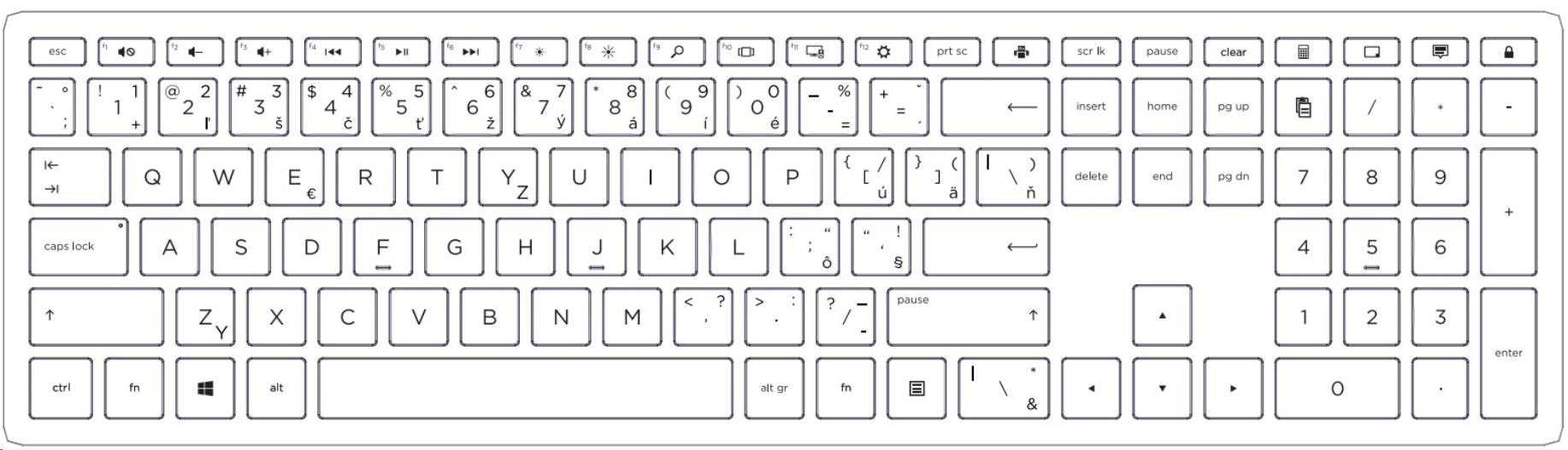 Kontrolka LED funkce Caps Lock se při aktivaci rozsvítí a pomáhá tak zvýšit přesnost při psaní a maximalizovat pracovní tempo.