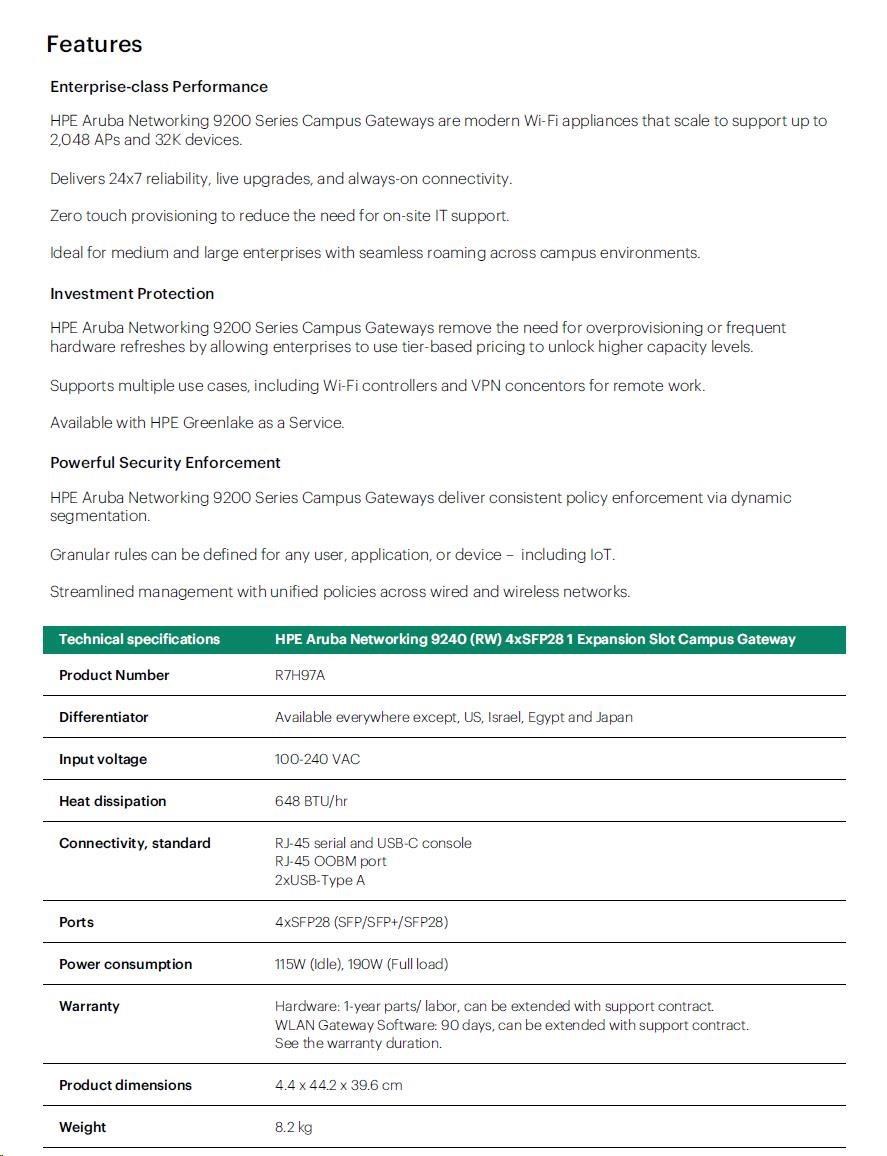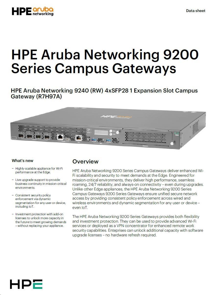 HPE Aruba Networking 9240 (RW) 4xSFP28 1 Expansion Slot Campus Gateway.