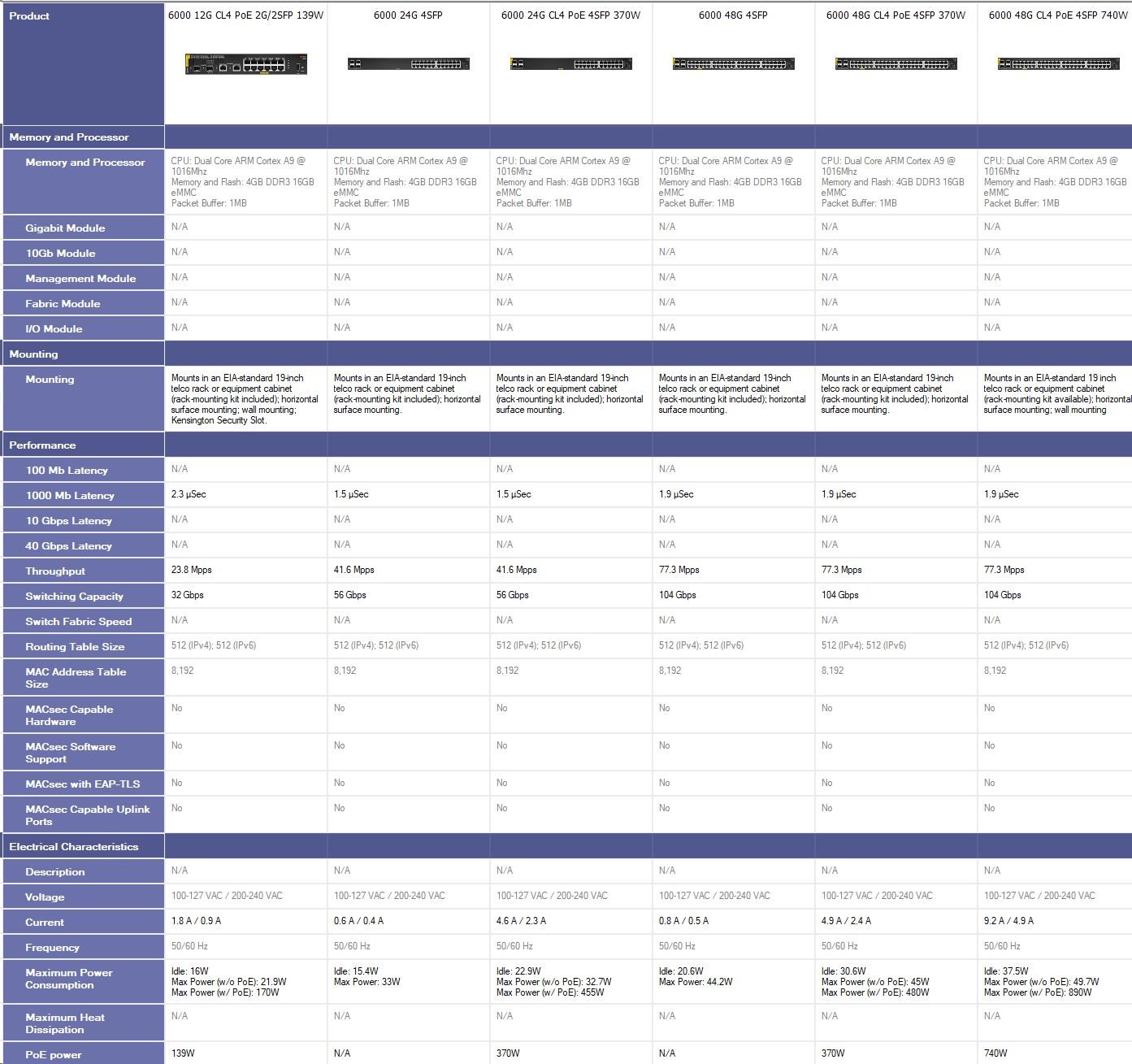 Aruba 6000 48G Class4 PoE 4SFP 370W Switch (R8N85A) | Aruba 6000 48G 4SFP Switch (R8N86A) | Aruba 6000 24G Class4 PoE 4SFP 370W Switch (R8N87A) | |
