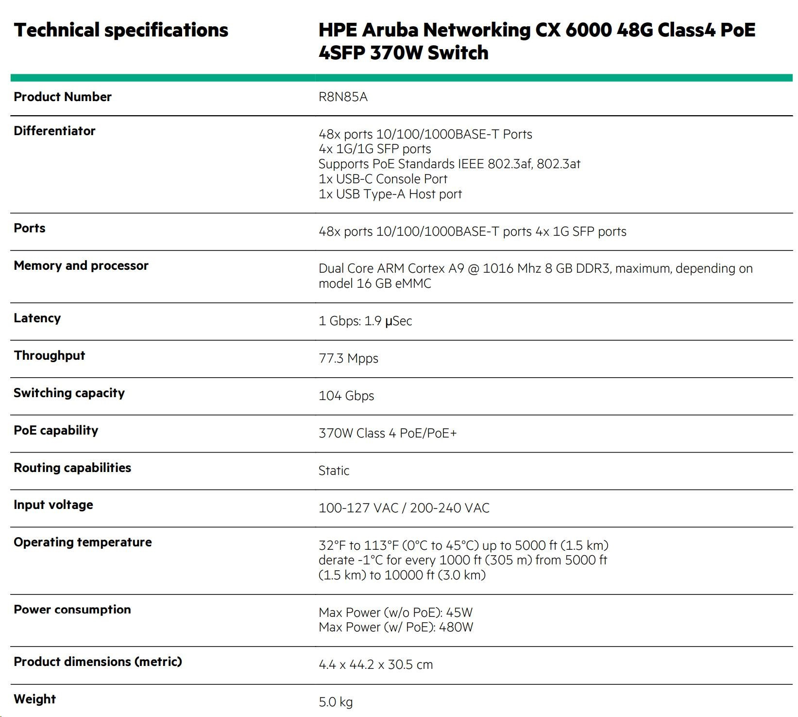 HPE Aruba Networking CX 6000 48G 4SFP Switch R8N86A