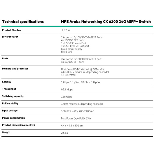 HPE Aruba Networking CX 6100 24G 4SFP+ Switch JL678A RENEW