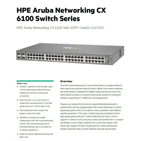 HPE Aruba Networking CX6100 48G 4SFP+ Switch RENEW JL676A