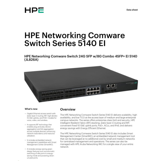 | HPE FlexNetwork 5140 24G SFP 4SFP+ EI Switch (JL826A) | ||