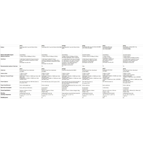 The HPE Networking Instant On Access Point AP21 features Orthogonal Frequency-Division Multiple Access (OFDMA) which allows them to handle multiple Wi-Fi 6 capable clients on each channel simultaneously; this improves efficiency by boosting overall capacity and reducing latency. Target Wake Time (TWT) – Ideal for IoT devices that communicate infrequently, TWT establishes a schedule for when clients need to communicate with an AP. This reduces power consumption and can extend the battery life of clients. Multiple Input, Multiple Output (MIMO) – Allows the access point to serve multiple clients (Wi-Fi 5 and Wi-Fi 6) simultaneously. - Safeguard Your Network With WPA-Enterprise Features