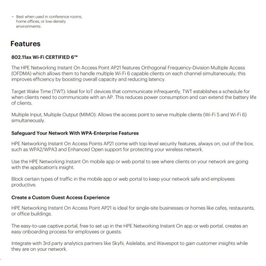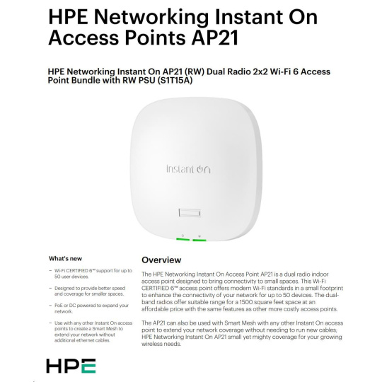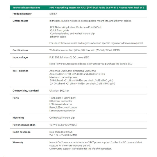 HPE Networking Instant On AP21 (RW) Dual Radio 2x2 Wi-Fi 6 Access Point 5 Pack (+ 5 Mount Brackets).