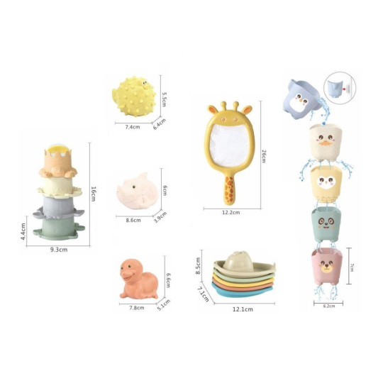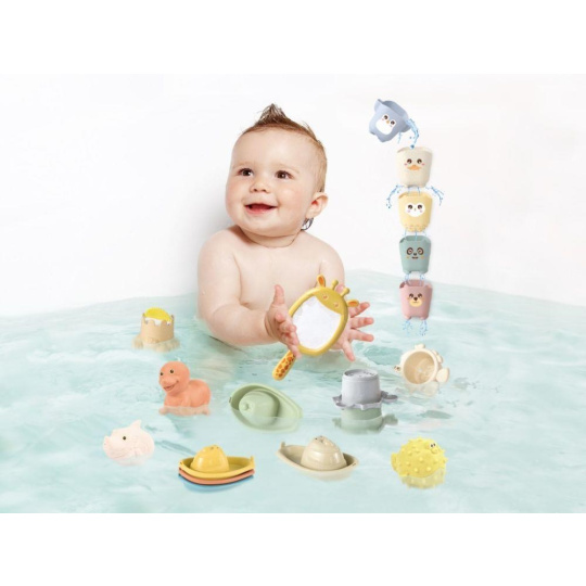 Sada roztomilých hraček do vody 5v1, se zvířátky ze ZOO, promění každou koupel v zábavnou hru. Lodičky, zvířátka, kelímky a síťka se postarají o to, že koupání ve vaničce, vaně nebo v bazénku nebude nuda. K nabírání vody, přelévání a polévání poslouží stohovací kelímky nebo kelímky se zvířátky, na vlnách se pohoupou barevné loďky a zvířátka a na rybáře si děti zahrají se síťkou žirafou..