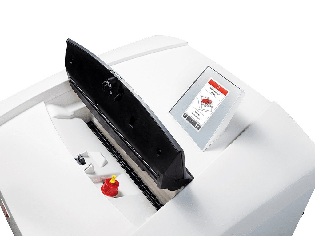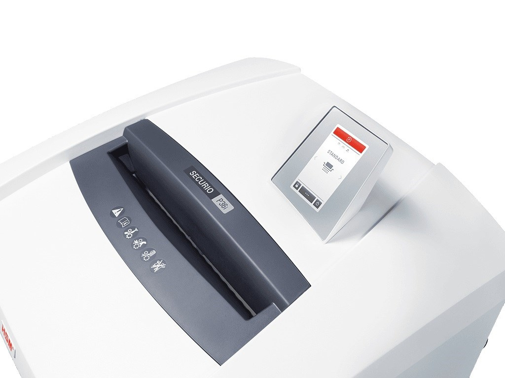 Výkonný profesionální skartovač nové konstrukce určený pro vysokou zátěž. Je vybaven systémem InteligentDrive s ovládáním přes dotykový displej v kombinaci se systémem EMCS, který zajišťuje úsporu elektrické energie při stand-by režimu. Má 3 volitelné režimy chodu: standardní, zvýšený výkon a tichý chod s automatickým přepínáním při zatížení stroje. Displej s českou mutací signalizuje všechny poruchové stavy, lze do něj nastavit kontakt na servis i je vybaven servisním rozhraním s údaji o provozních hodinách a různými nastaveními. Vstup je vybaven bezpečnostním dotykovým spínačem. Masivní ocelové nože poháněné přes převodovku moderním výkonným řízeným motorem mohou skartovat papíry s kancelářskými sponkami i plastové karty a CD/DVD. Tato verze je v příčném řezu. Nože mají systém automatického mazání. Zásobník objemu 145 l je vybaven výsuvným závěsem na plastový pytel. Stroj je mobilní - na kolečkách. Stroj je stejně jako ostatní typy HSM Securio vyroben v Německu. Stroj je vhodný jako skartovač pro zpracování zvláště citlivých osobních údajů dle GDPR, jejichž zneužití by mělo závažný dopad na dotčenou osobu (obor zdravotnictví, pojišťovnictví, advokacie apod.) Skartovací stroj je držitelem certifikátu k životnímu prostředí šetrného výrobku nejvyšší kvality Blue Angel. Záruka na stroj je 60 měsíců, doživotní záruka na nože..