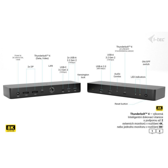 i-tec Thunderbolt 4 Intelligent Dual Display Docking Station + Power Delivery 90W