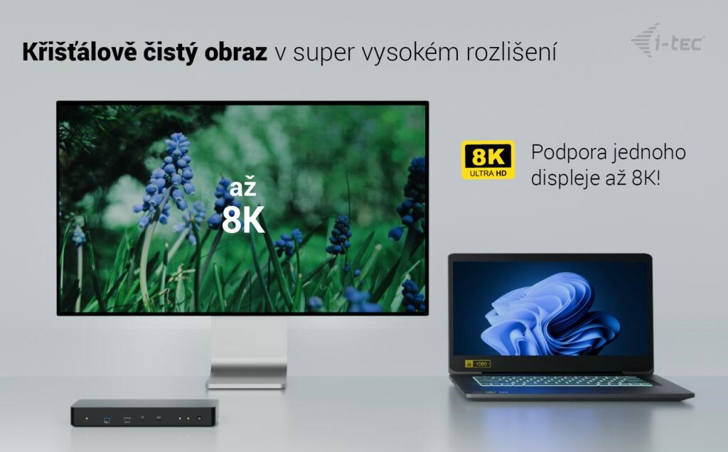 - Podporuje rozlišení až 8K nebo dva 4K monitory s obnovovací frekvencí až 60 Hz.