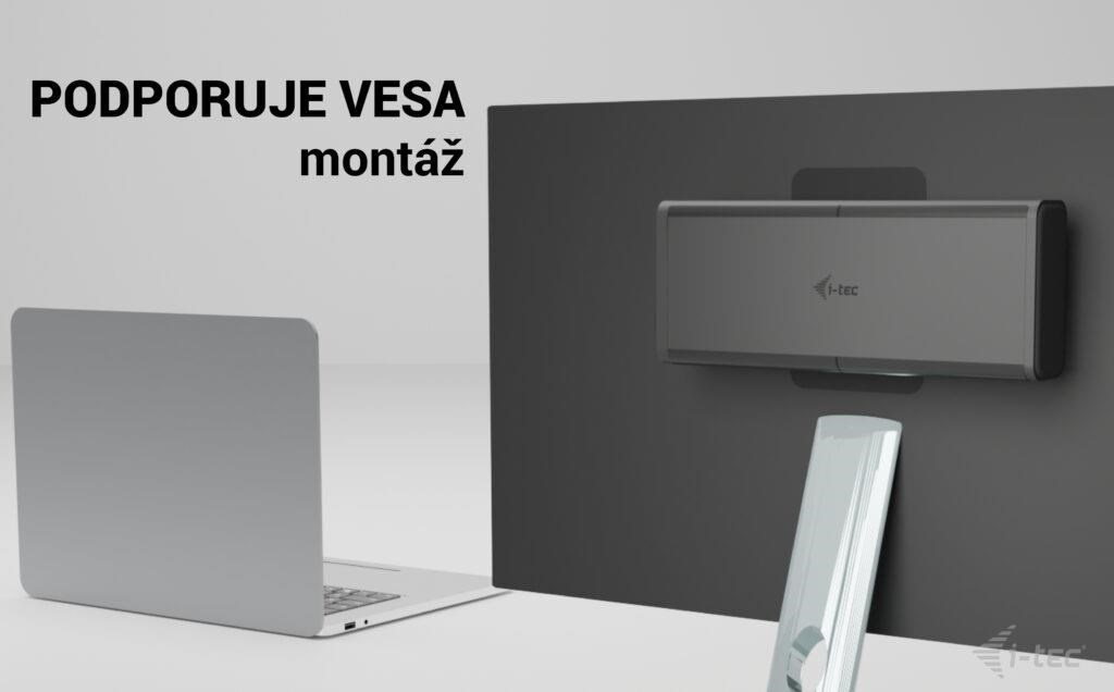 Dokovací stanici lze nainstalovat za monitor (pokud podporuje standardní držák VESA), pomocí i-tec VESA mount.