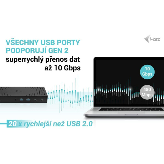 - Volitelné klonování MAC adresy a automatické zálohování dat připojeného počítače (při použití softwaru i-tec Docker Pro).